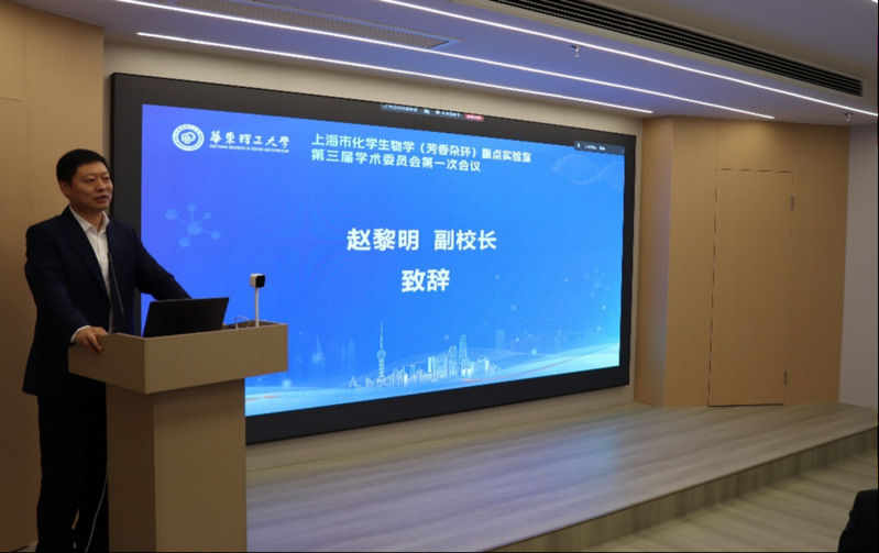 赵黎明代表学校致辞,他指出上海市化学生物学(芳香杂环)重点实验室的建设,为落实“健康中国2035”国家战略、服务上海市绿色农药产业发展,深入推进学校“两新两大”战略布局和实施智能制造提供了重要的科研支撑平台。在学术委员会各位院士、专家的悉心指导和大力支持下,实验室在平台建设、人才培养、科研创新与成果转化等方面均取得重要进展与突破。在建设科技强国的宏伟征程中,实验室正处于乘势而上的关键机遇窗口,同时也承载着服务国家战略需求的重大责任。诚挚期盼学术委员会各位专家继续发挥学术引领作用,为实验室长远发展把方向、谋思路、提建议。