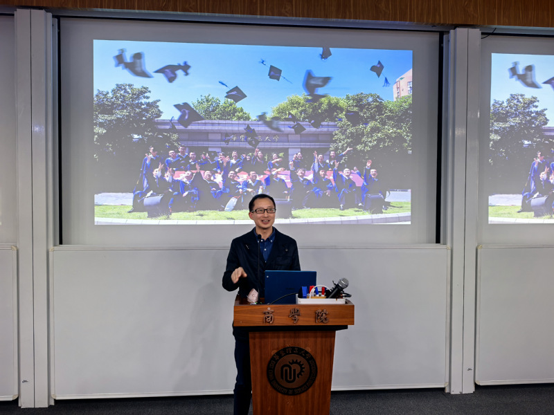在交流环节,两位来自杭州第四中学的校友孟航青和蒋程阳同学分享了他们在华东理工大学四年的学习与成长经历。